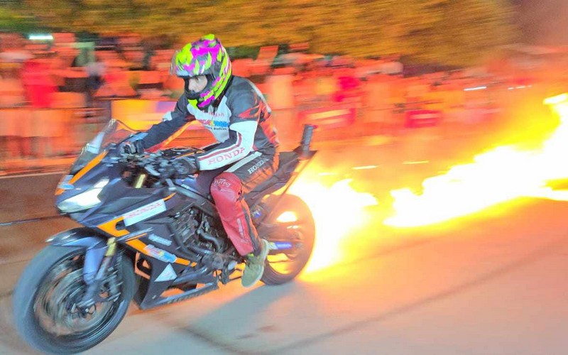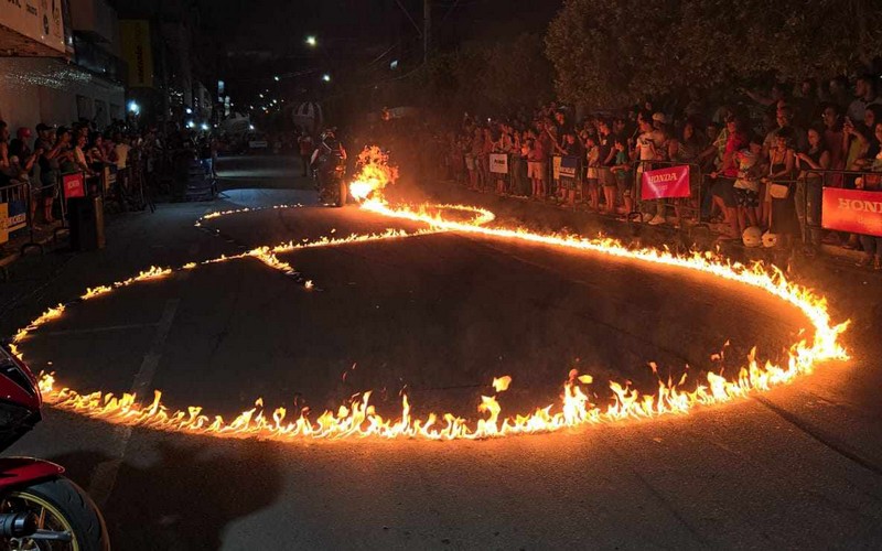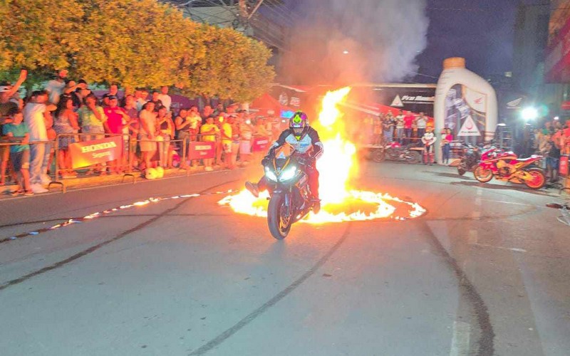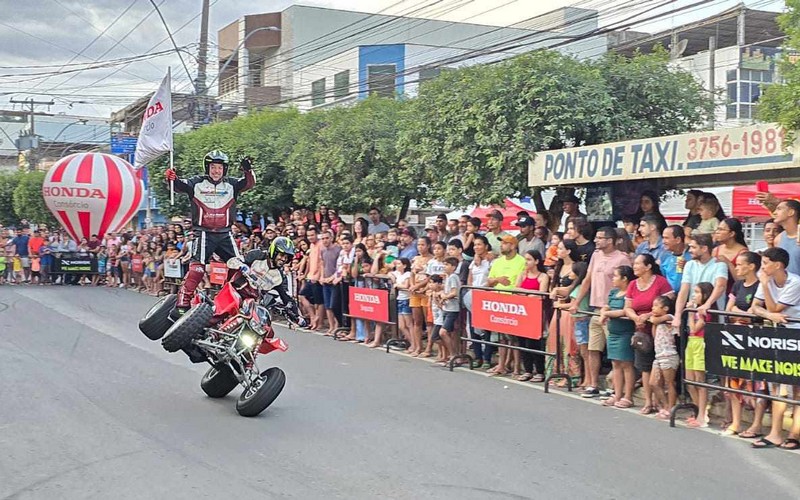 Com diversas manobras radicais sob motocicletas de alta performance, a equipe de acrobacias de São Paulo cativou olhares de crianças, jovens, adultos e idosos que acompanharam o evento, promovido pela concessionária de motocicletas, Honda Mol Motos.