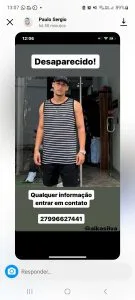 A família pede para quem tiver informações entre em contato com o número 27 99662- 7441
