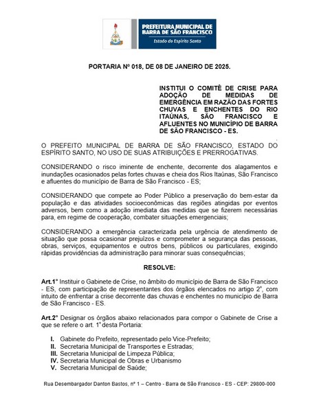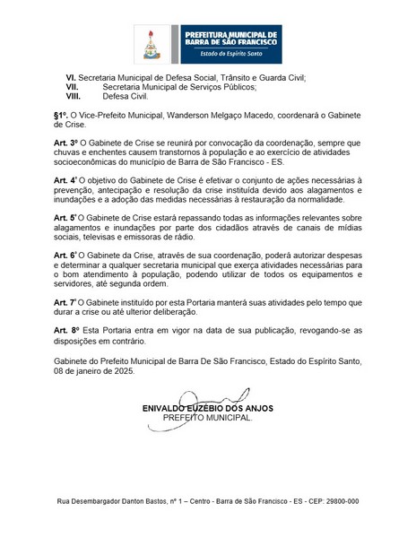 A Prefeitura de Barra de São Francisco criou, nessa quarta-feira (8), um comitê intersecretarial para atender as famílias afetadas pelas chuvas intensas desde a madrugada dessa quarta-feira. O temporal provocou enchentes e causou danos em diversos pontos da cidade.