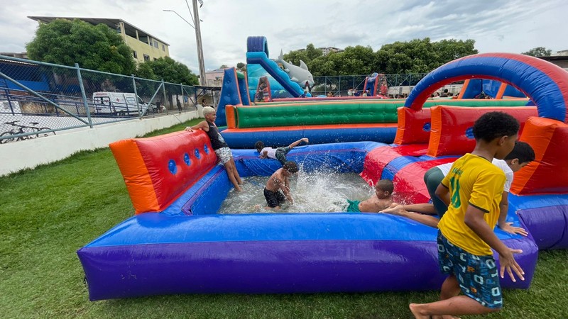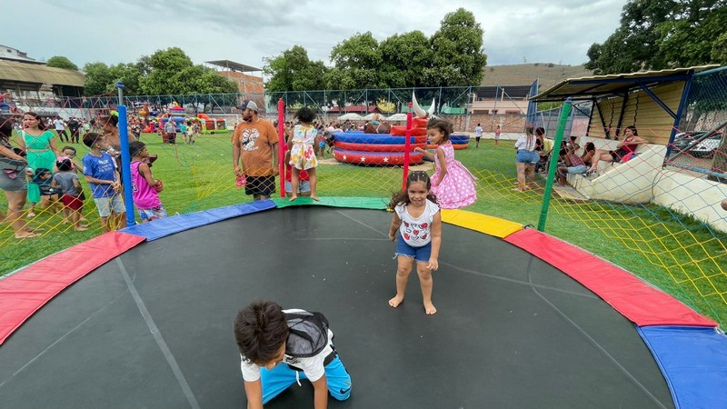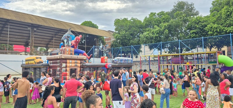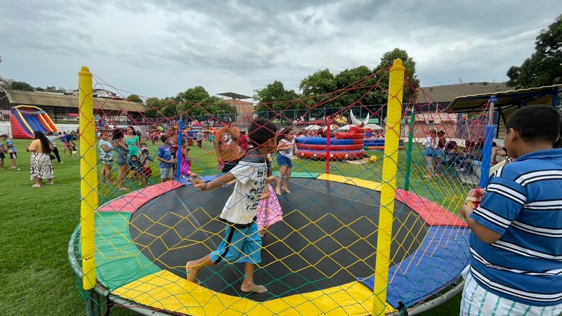 A Prefeitura de Barra de São Francisco, por meio da Secretaria Municipal de Esportes e Lazer (Semel), realizou, no último sábado (12), uma grande festa em comemoração ao Dia das Crianças. O evento aconteceu no Estádio Municipal Joaquim Alves de Souza, no bairro Campo Novo, pelo terceiro ano consecutivo. No local, houve distribuição de pipocas, balas, picolés, algodão-doce, além de pula-pulas, futebol de sabão, touro mecânico e muito espaço aberto para a criançada se divertir.