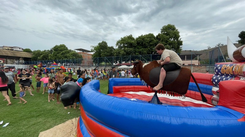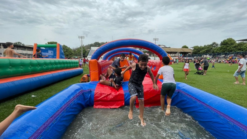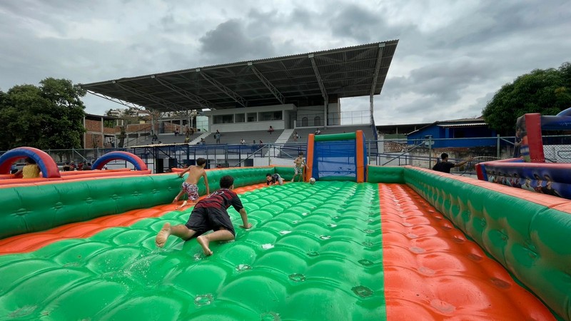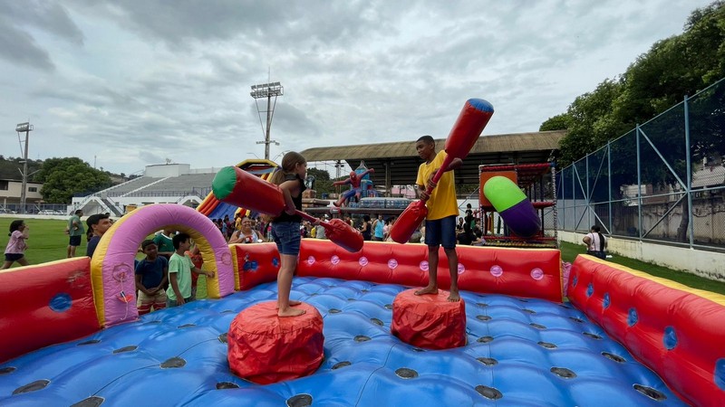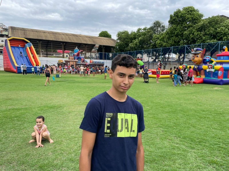 Marcos Vinícius trouxe a família para curtir o Dia das Crianças no Estádio Municipal e parabenizou a atual gestão pela iniciativa. “Tem que ter isso todo ano, não pode deixar passar em branco, pois é uma coisa que as crianças gostam. O adulto vem, fica aqui com as crianças e elas brincam bastante. Parabéns à Prefeitura por mais essa atitude de cuidado com nossas crianças”, disse Marcos Vinícius.