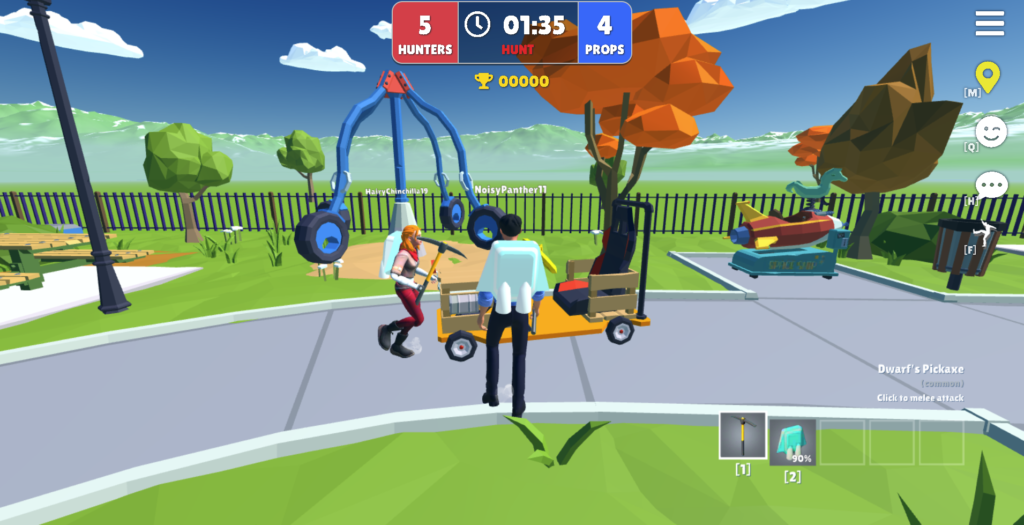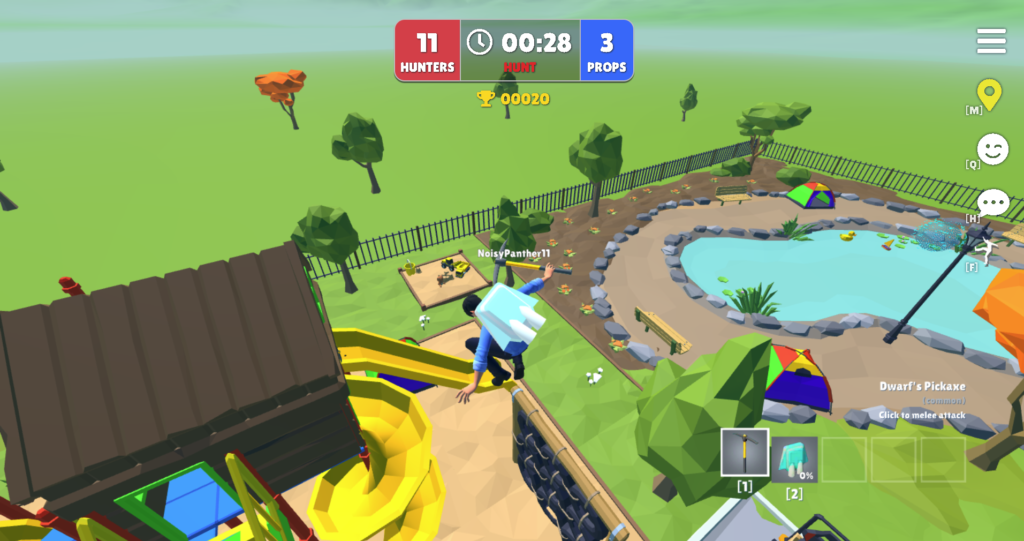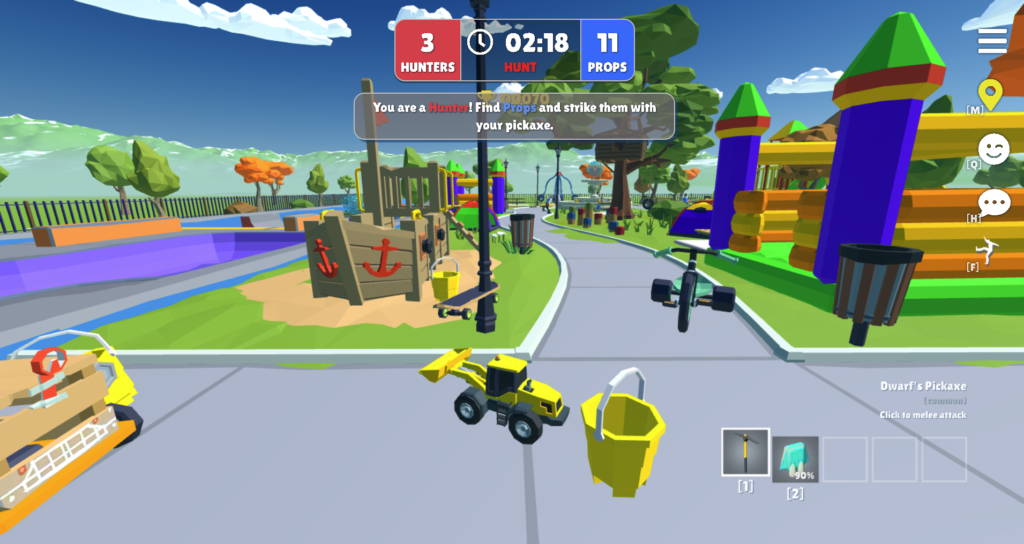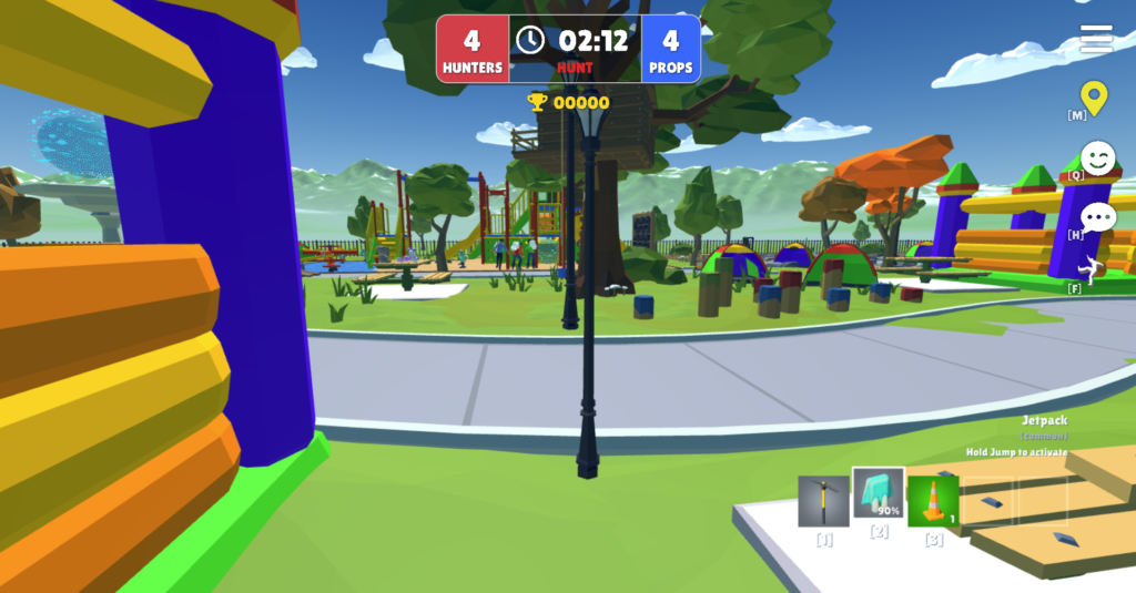 A equipe dos “props” tem a tarefa de se esconder no mapa, transformando-se em objetos que fazem parte do cenário. O objetivo principal é passar despercebido pelos caçadores até o tempo acabar. Isso exige criatividade e estratégia, pois os jogadores precisam escolher o objeto certo para se disfarçar e encontrar o local perfeito para se camuflar. Pode ser uma simples cadeira em um canto ou uma caixa que parece parte natural do ambiente, mas a habilidade de se misturar com o cenário é o que torna este jogo tão envolvente.