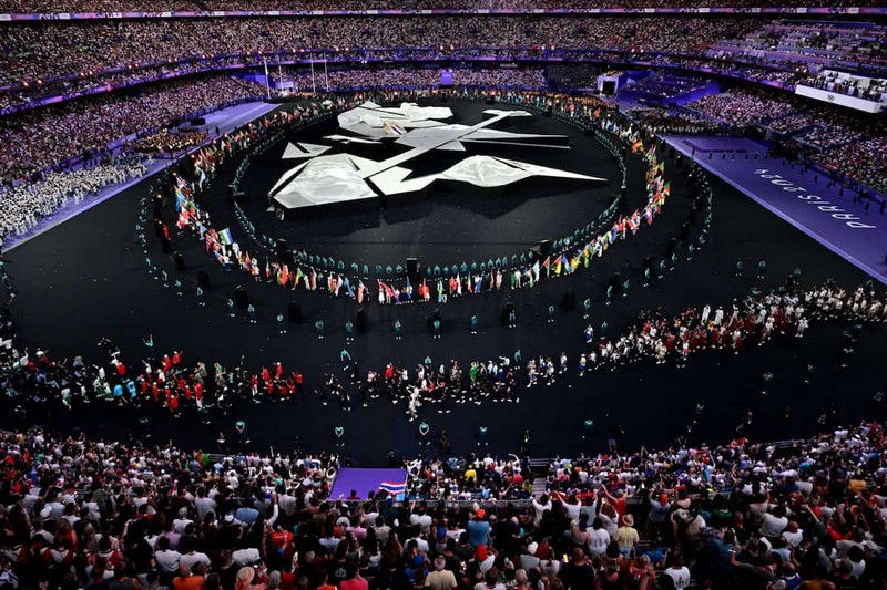 Cerca de 9 mil atletas participaram da celebração. Duda e Ana Patrícia, dupla medalha de ouro no vôlei de praia, carregaram a bandeira da delegação brasileira na entrada dos atletas no estádio.